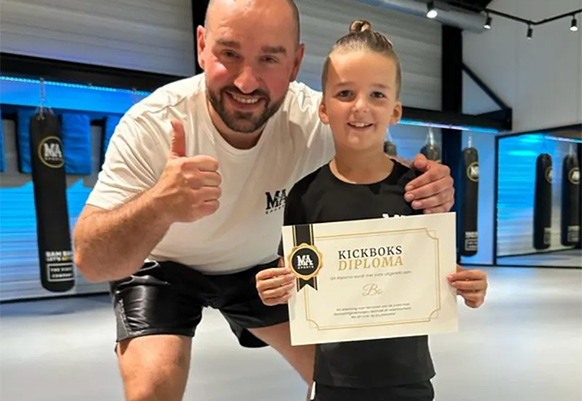 Onze kids krijgen ieder jaar een kickboksdiploma, omdat we het belangrijk vinden dat ze zich gemotiveerd en welkom voelen.
